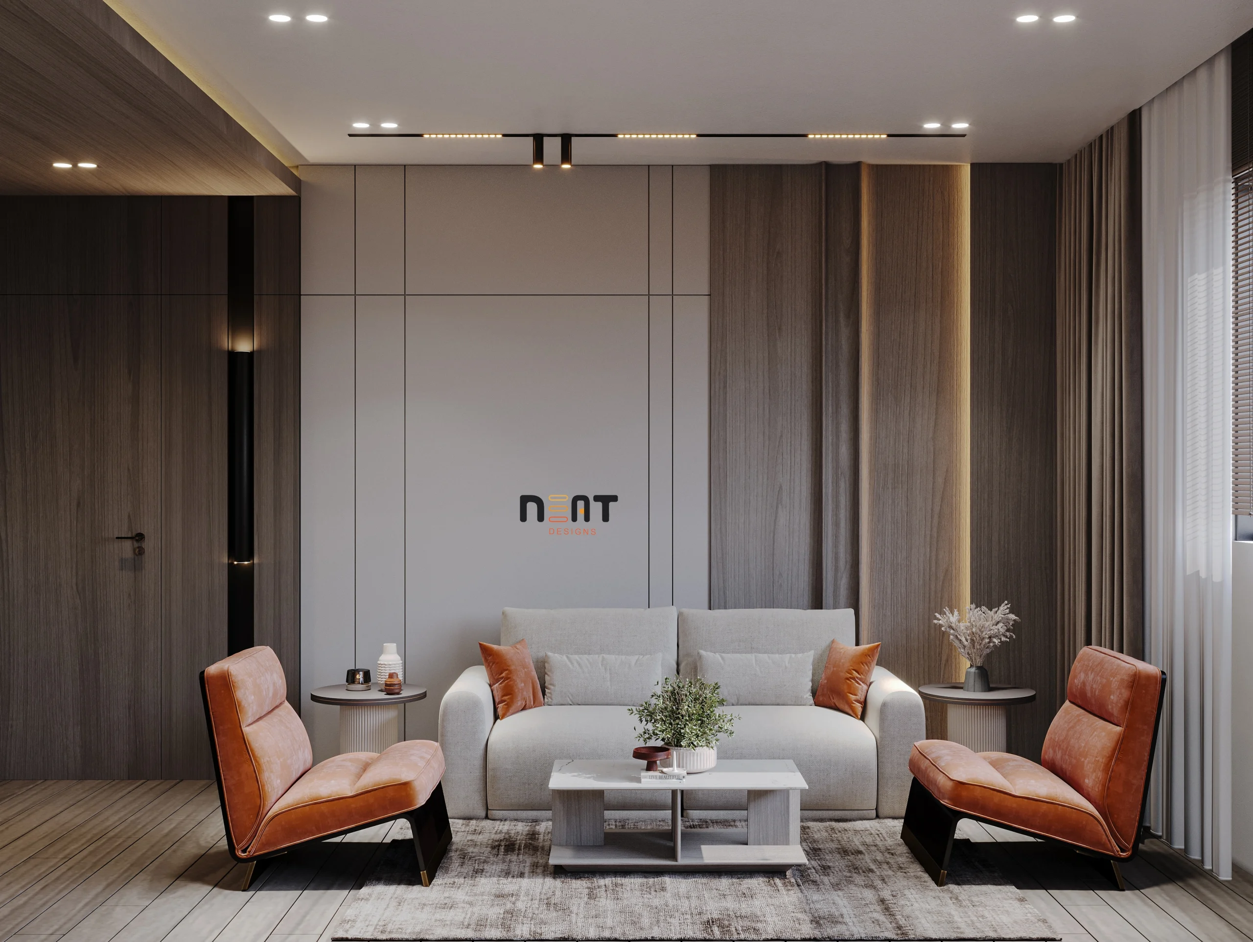 مساحة معيشة دافئة ومليئة بالضوء، مصممة لتجمع بين القوام الطبيعي والراحة العملية والانسجام الجمالي الراقي - مصممة للعائلات التي تبحث عن الهدوء والتواصل والأناقة المعاصرة.